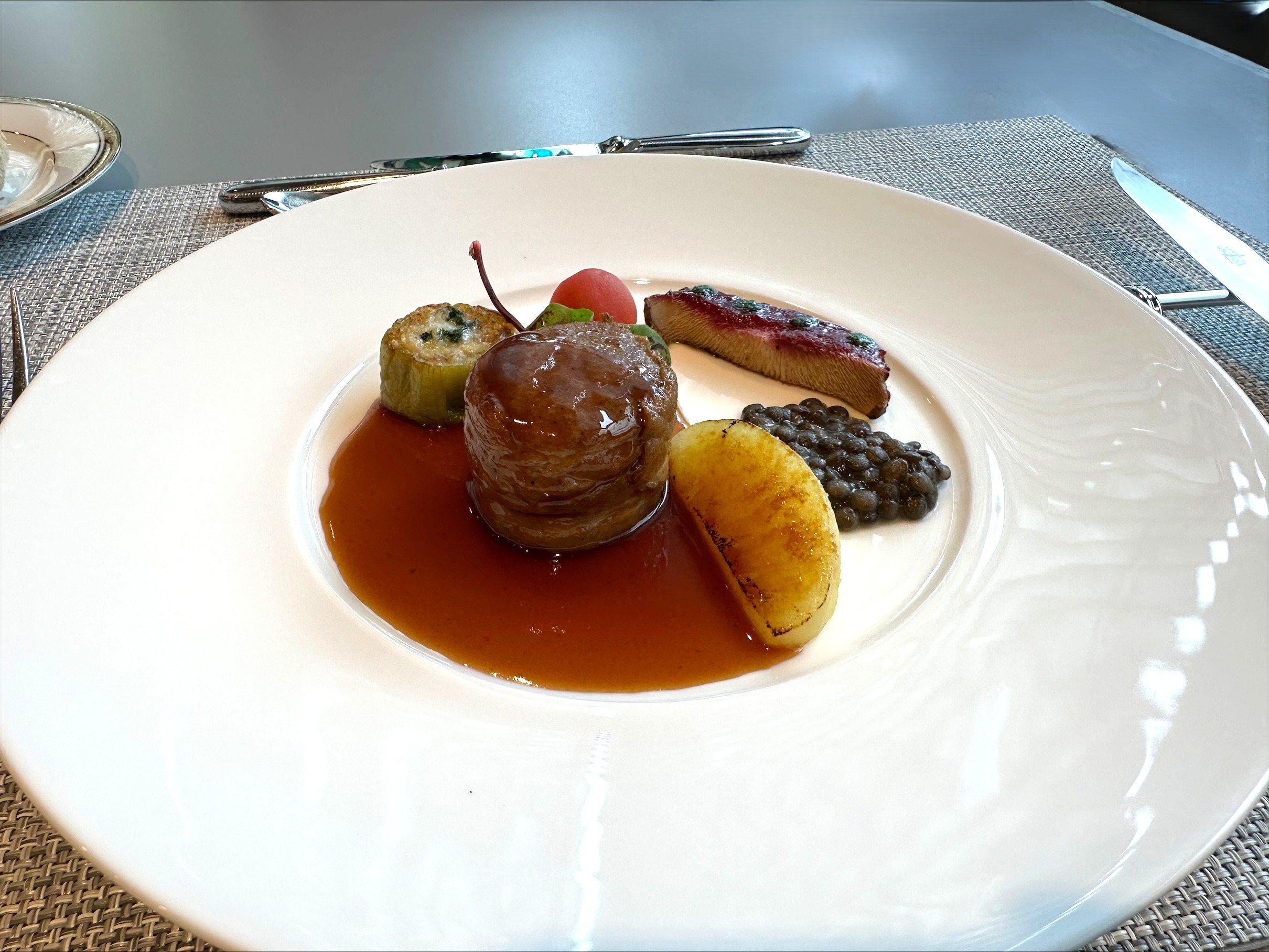 お肉もちろんおいしいですがカソナードがふりかかったりんごも抜群においしいです。