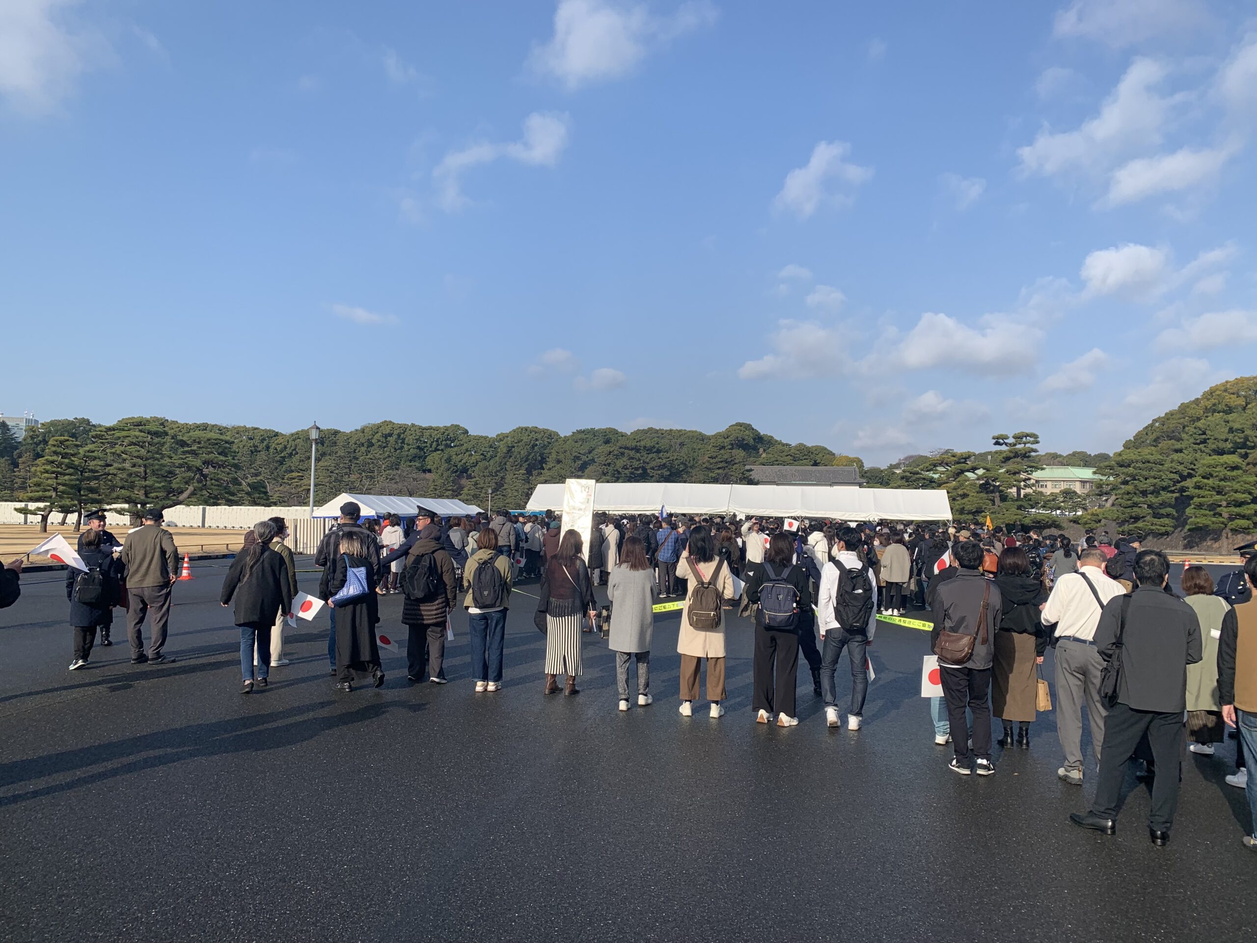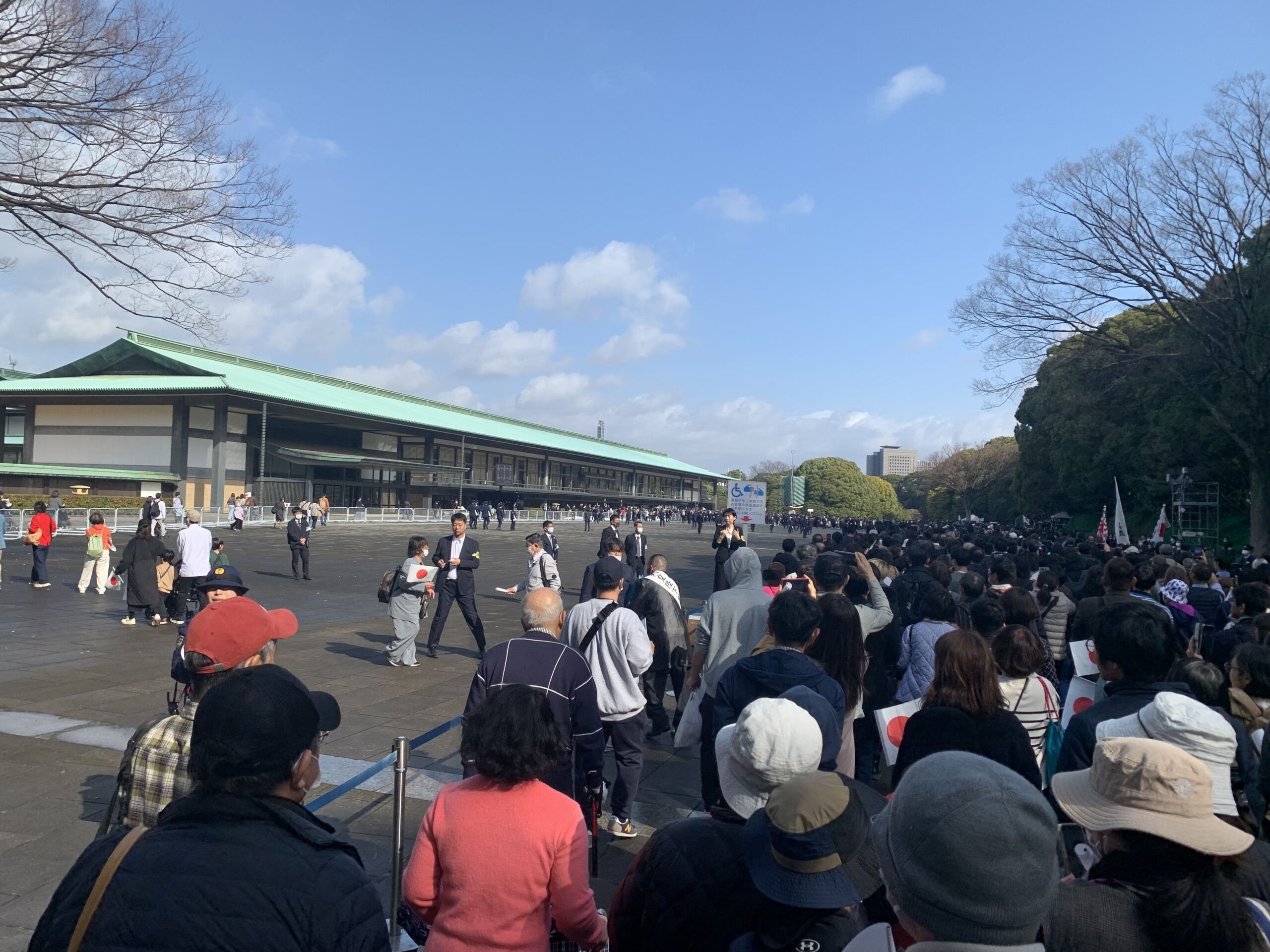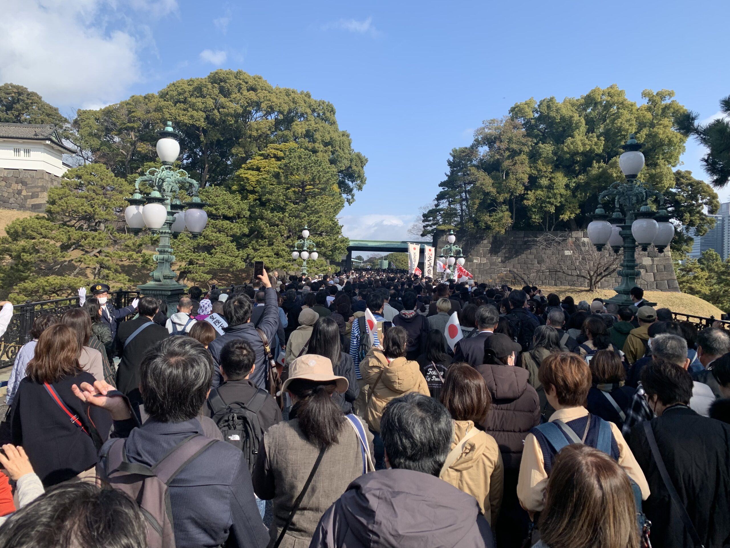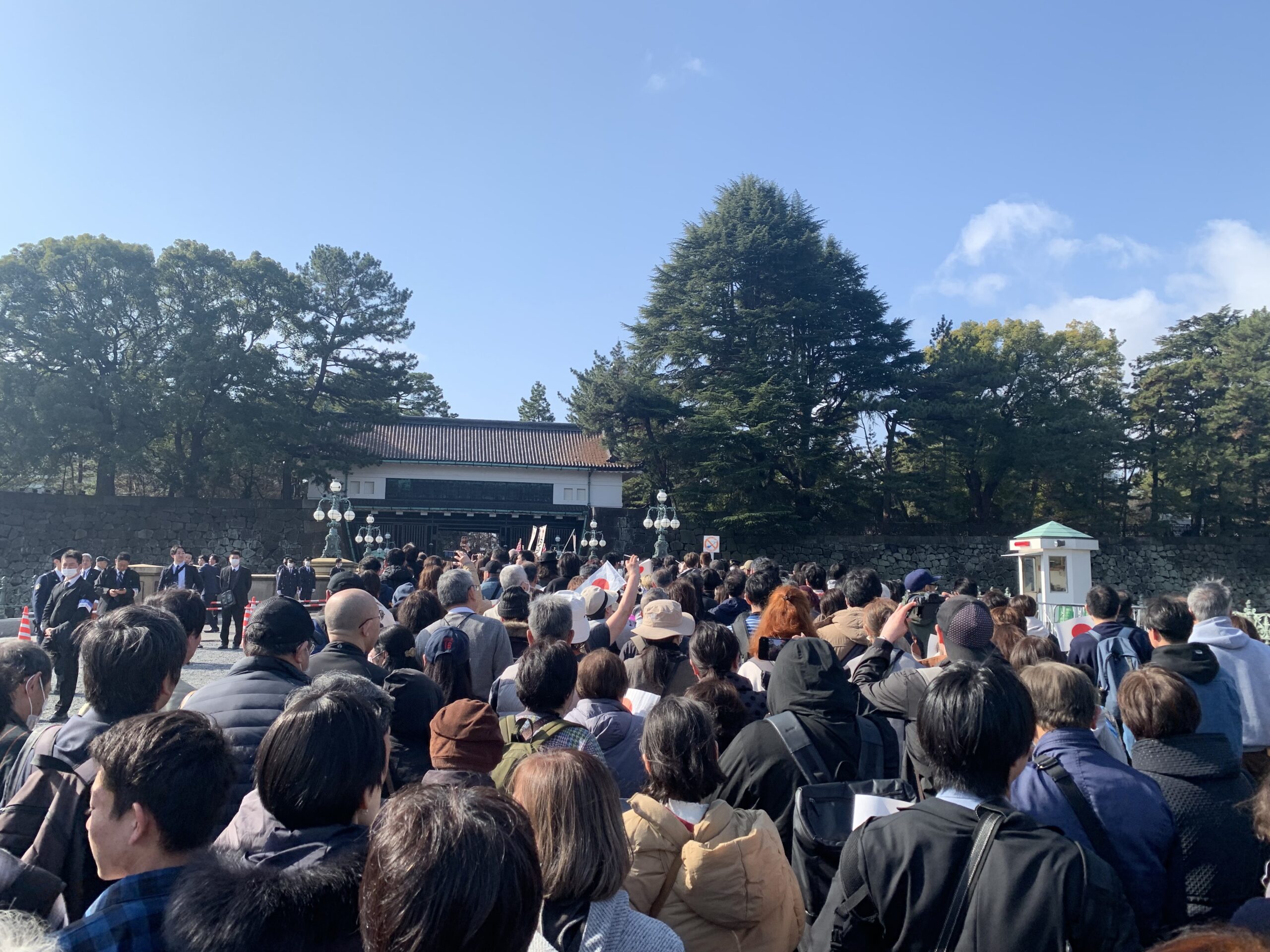 昼の新幹線にて帰岡する前に皇居にて天皇誕生日一般参賀に行ってきました。事前にAIで調べたところ、1回目のお出まし10時20分に間に合うためには8時に皇居正門前に並ばなければならないとのことで早起きをして皇居までやってきました。