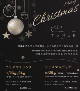 欧風レストラン巴では、クリスマスに特別なランチ&ディナーコースをご用意いたしました。